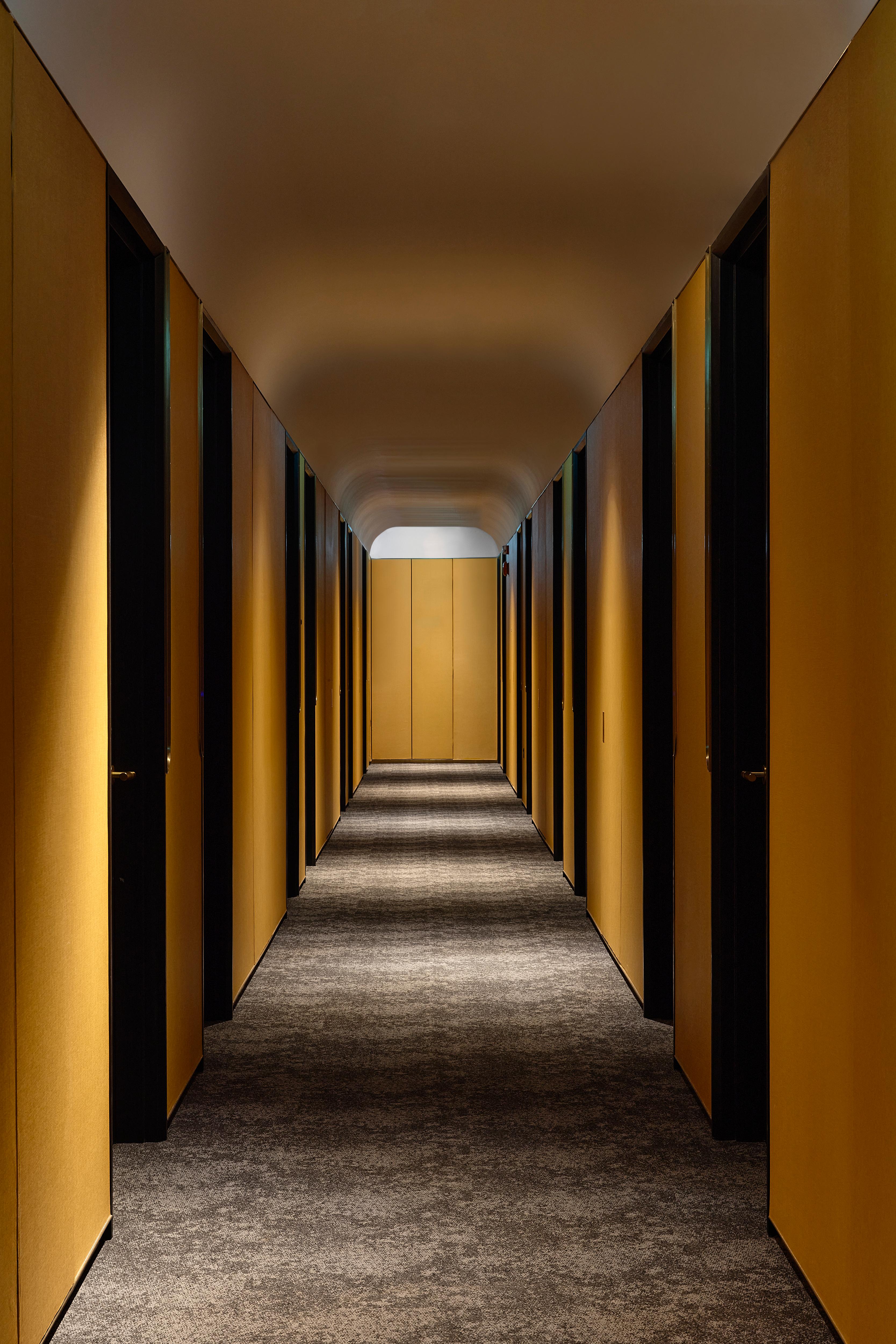 Throughout, the project attempts to strategically reference different periods and a variety of design languages within a confined space. Rather than designing standard lobbies on every floor, they were finished with a colour that hinted at the design of the rooms nestled within.